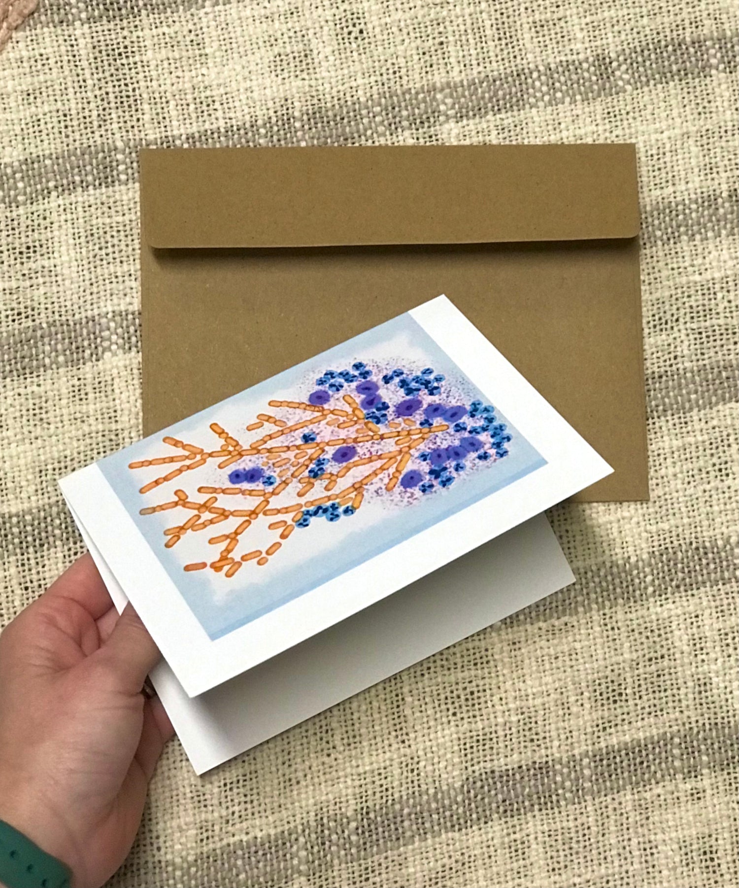 Colorful cells paintings/drawings on blank greeting cards. These cards are 4.5”x6” inches...