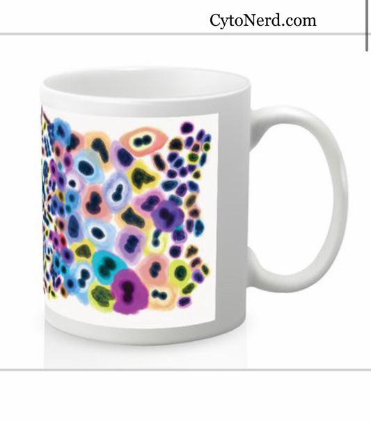 Mugs with cancer cells , coffee cup, ceramic cup with cells - Papsmear cells